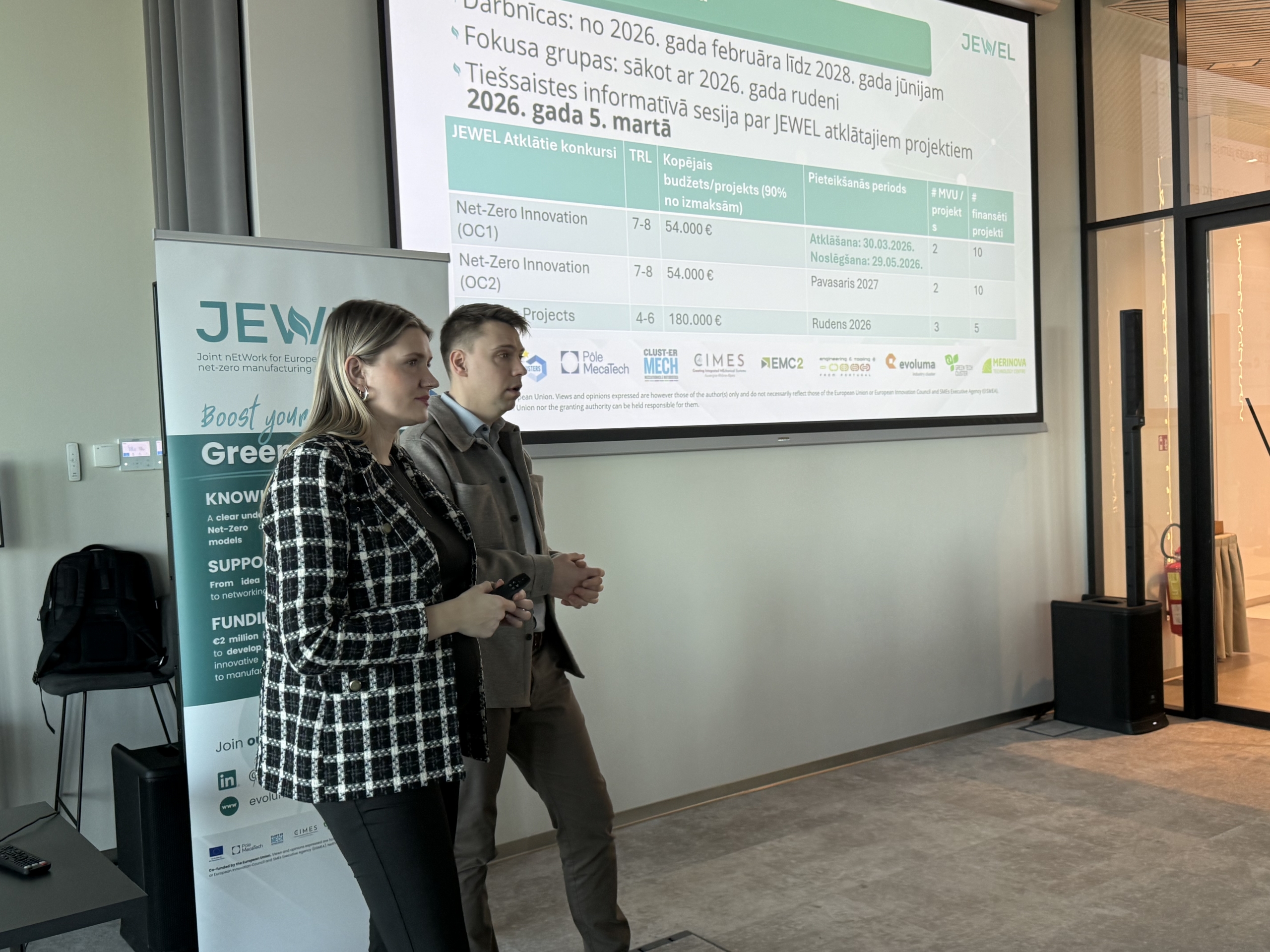 – Joint nEtWork for European net-zero manufacturing Leadership (JEWEL) , Projekts Nr. 101236275, kas tiek īstenots SMP-COSME-2024-CLUSTER, uzsaukuma ietvaros.