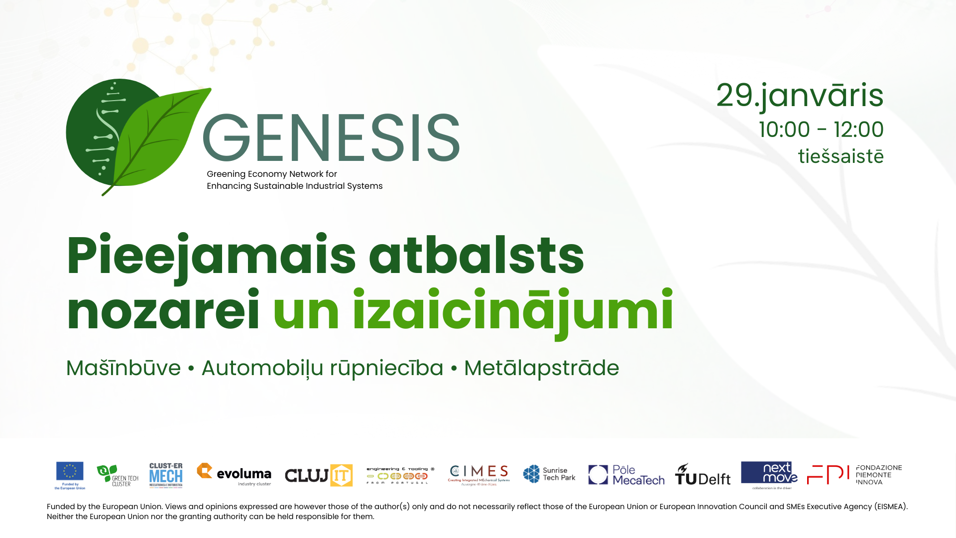 Kā daļa no #I3Instrument Eiropas projekta GENESIS – Zaļās ekonomikas tīkls ilgtspējīgu rūpniecisko sistēmu attīstībai – ietvaros, aicinām piedalīties reģionālajā seminārā, kas norisināsies 2026. gada 29. janvārī no plkst. [...]