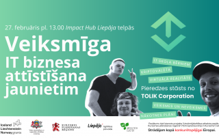 27. februārī pl. 13.00 Impact Hub Liepāja telpās (Strautu iela 4, ieeja no Bārtas ielas puses) norisināsies pasākums “Veiksmīga IT biznesa attīstīšana jaunietim”. Pasākumā uzņēmuma “TOLIK Corp” īpašnieki dalīsies [...]